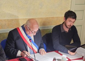 Claude Gautié paré de l'écharpe tricolore