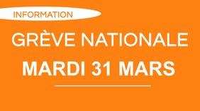 Nous vous informons que la grève nationale de demain, mardi 31 mars, n'aura pas d'incidence sur les services municipaux qui fonctionneront normalement.