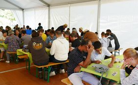 Sous les chapiteaux, les joueurs sont concentrés: en famille ou entre amis, les visiteurs sont venus découvrir de nouveaux jeux de société dont les bénévoles d’Alors Jouons leur expliquent les règles.