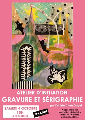 "Un atelier d'initiation à la gravure et la sérigraphie animé par l'artiste Clara Gaget est proposé le samedi 4 octobre à 15h à la Galaria.