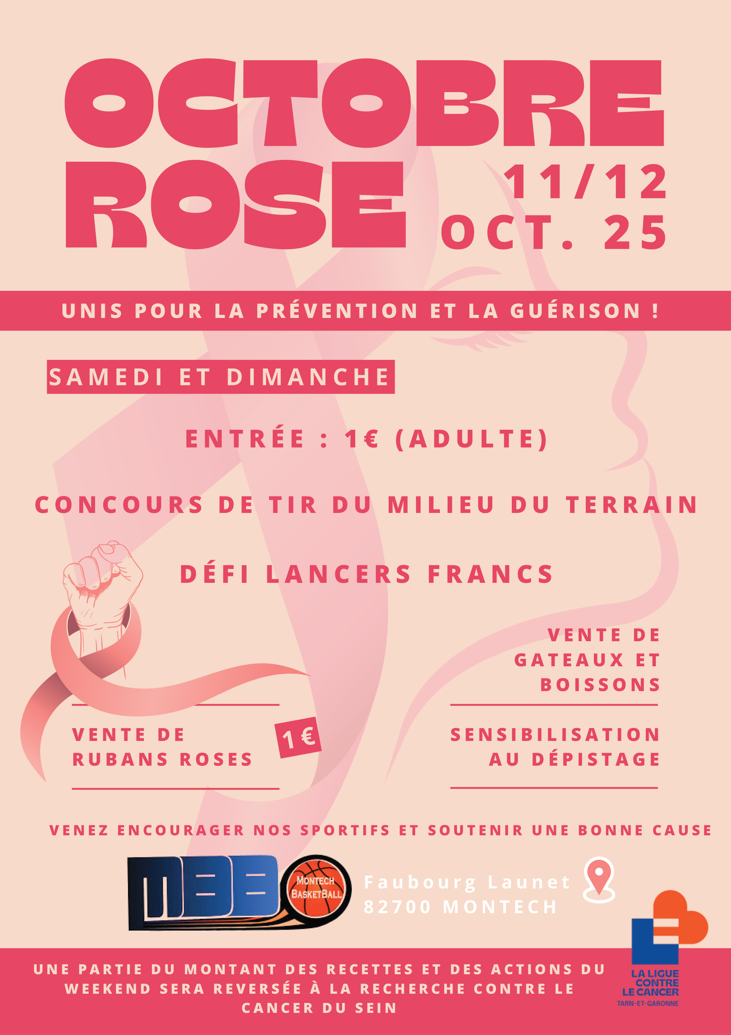 Le Montech Basket Ball se mobilise pour Octobre Rose, le weekend du 11/12 octobre 2025 au gymnase tout au long des rencontres