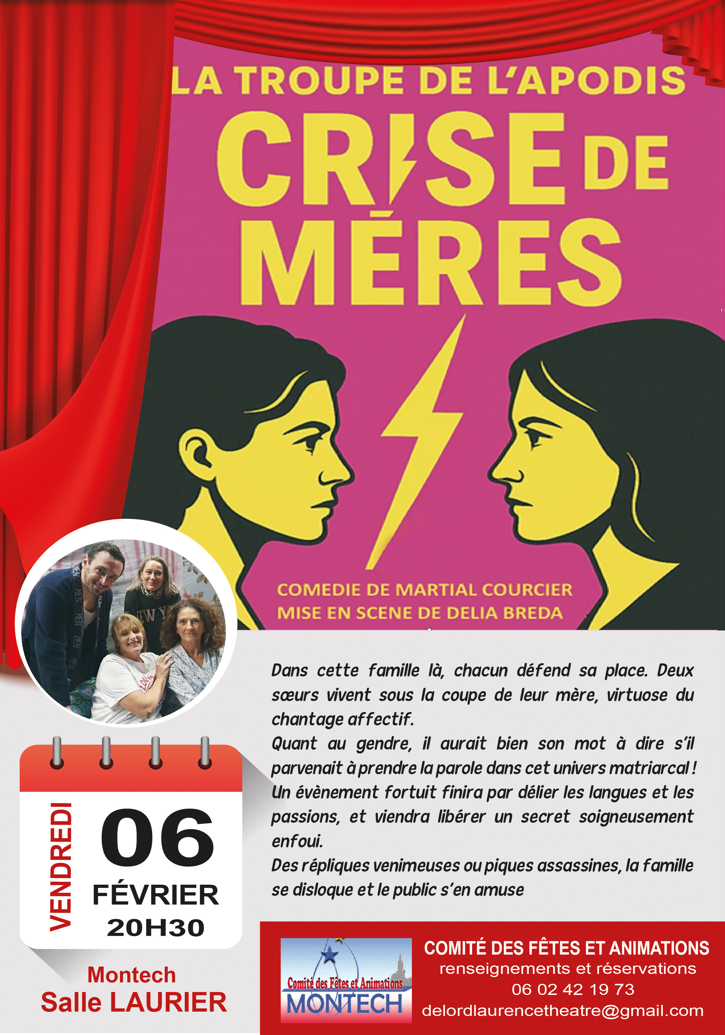 Le Comité des Fêtes et Animations vous propose une comédie avec la troupe Apodis, “Crise de mères”, le vendredi 6 février à la salle Laurier.
